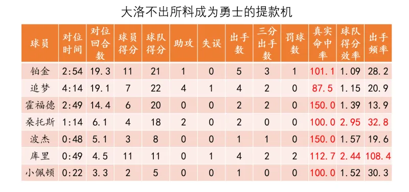 我们在前瞻里重点提到,只要库里在场对上大洛就一定是勇士的上风球,因为进攻开发的难度会大大下降。