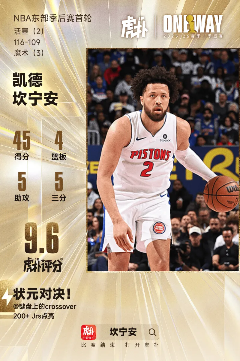 坎宁安狂砍45分,哈登23分赢下天王山,今日最佳你选谁?